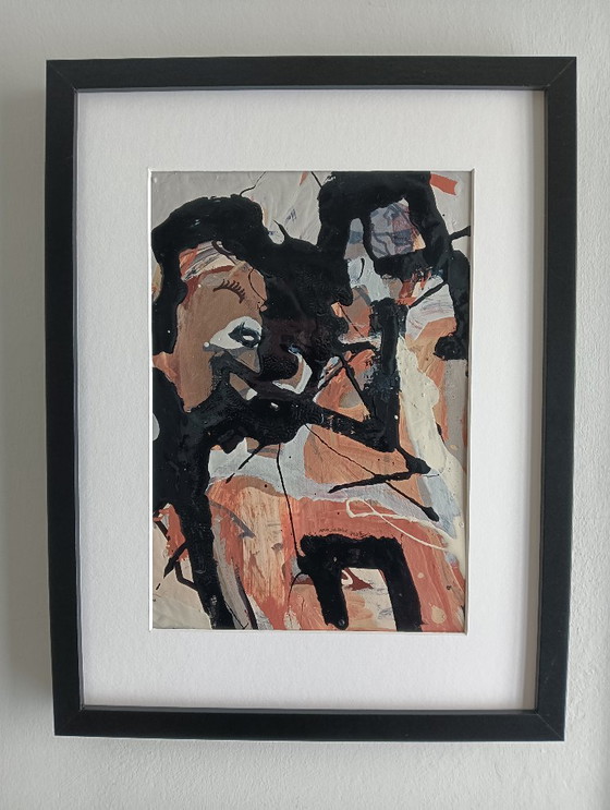 Ontdek de intrigerende abstracte kunst van "Pleasant get-together", een uniek stuk dat een vleugje verfijning aan elke ruimte toevoegt. Dit kunstwerk, ingelijst in een strakke zwarte lijst, biedt een boeiende mix van zwarte, bruine en witte tinten die samen een dynamisch en expressief geheel vormen.
