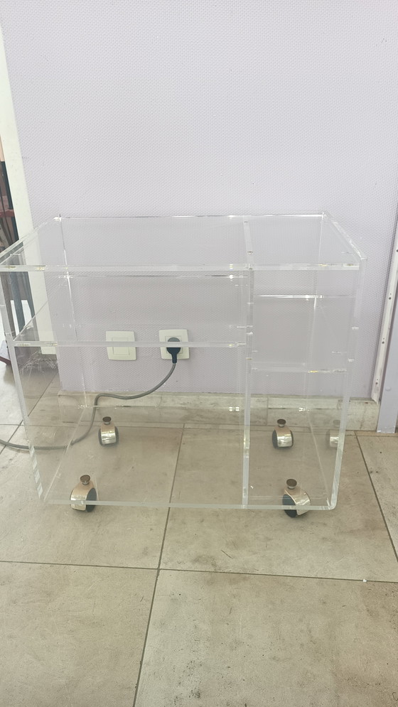 - Gemaakt van hoogwaardig plexiglas, biedt deze trolley een transparante en luchtige uitstraling die de ruimte niet domineert.