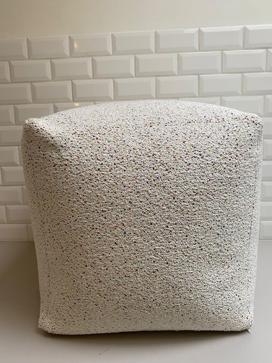 Deze moderne bouclé poef is een stijlvolle en veelzijdige toevoeging aan elk interieur. Met zijn zachte textuur en speelse kleurenpalet brengt hij zowel comfort als een vleugje elegantie in uw ruimte.