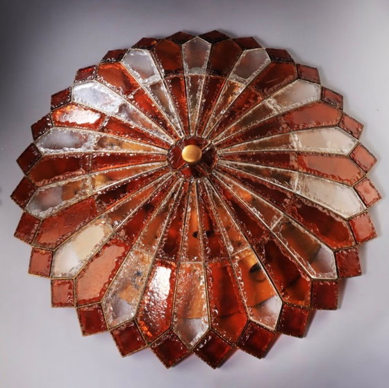 Deze prachtige Poliarte wandlamp of plafondlamp is een prachtig voorbeeld van Art Deco design. De prachtige combinatie van rood en transparant glas met goudkleurige metalen accenten zorgt voor een betoverend visueel effect. Het ingewikkelde glaswerk en elegante ontwerp maken het een perfecte aanvulling op elk verfijnd interieur. Ideaal om een vleugje vintage charme aan je interieur toe te voegen.