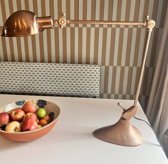 Verlicht uw werkplek met de Pols Potten bureaulamp, een opvallend stuk dat functionaliteit combineert met een modern design. Deze lamp, uitgevoerd in koper, voegt een vleugje elegantie toe aan elk kantoor of studeerkamer.