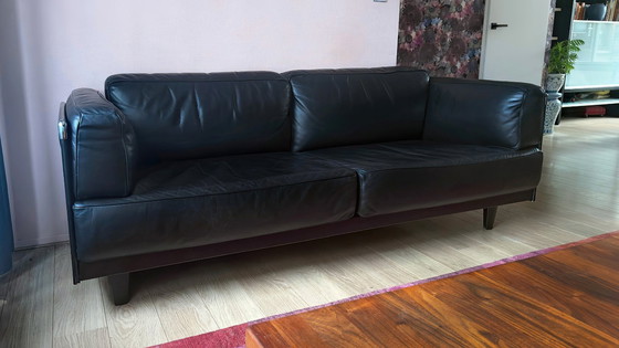 Te koop onze geliefde zwart leren design sofa van Poltrona Frau genaamd 'Twice' in een ontwerp van Pierluigi Cerri uit 1996.