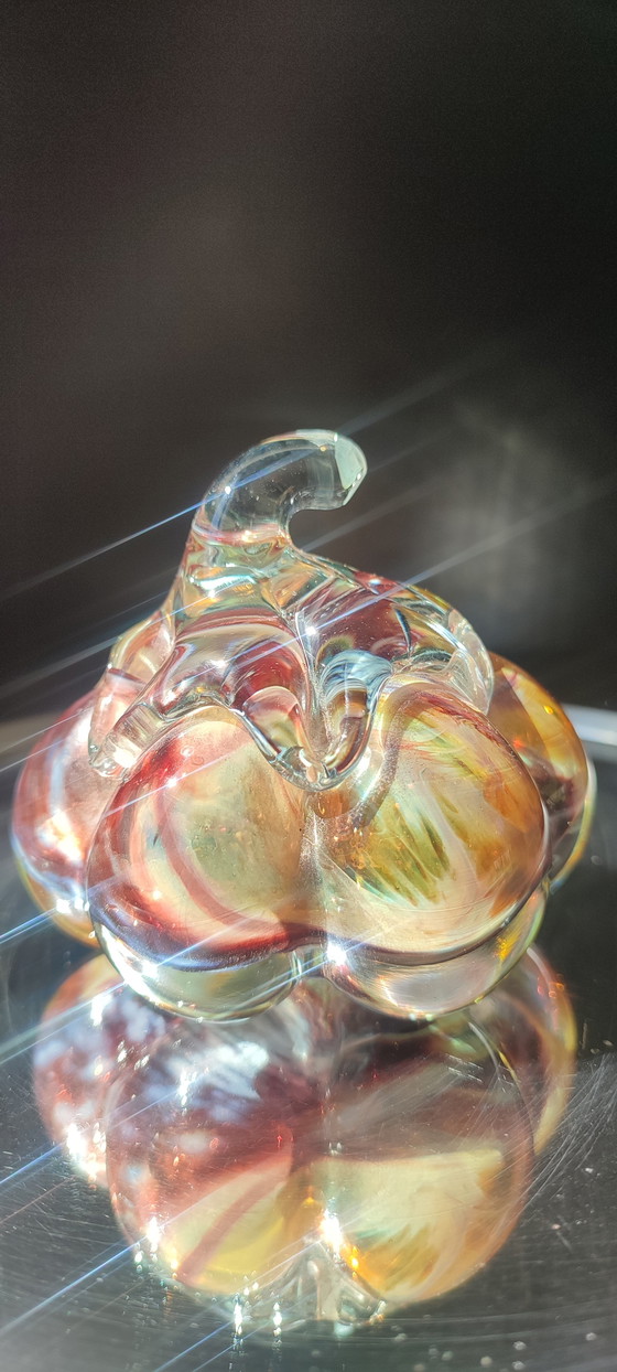 Pompoen van geblazen glas, gesigneerd door Loup Guittet.