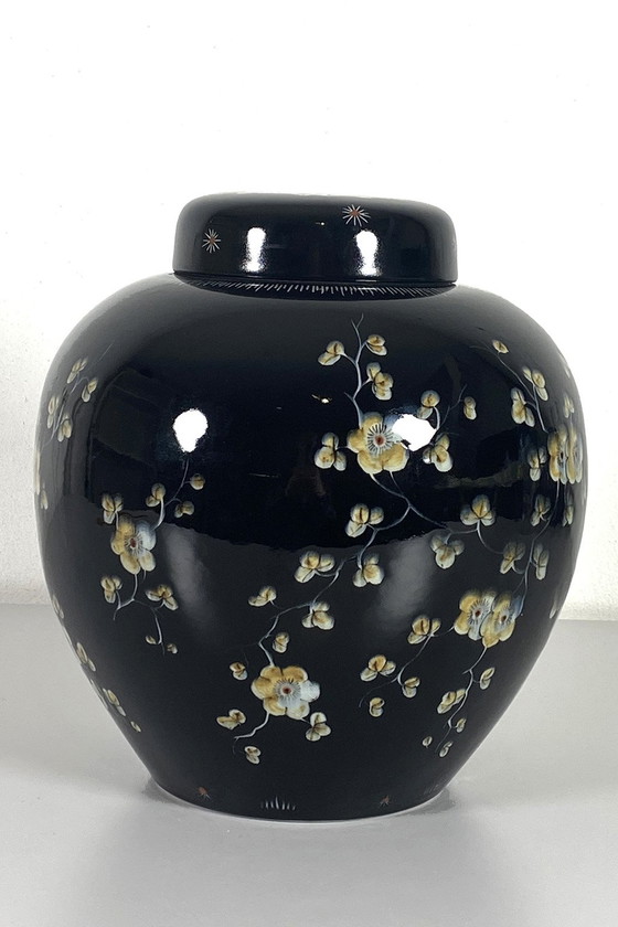 Porseleyne fles dekselpot. Deze zeer zeldzame grote pot met deksel van porselein komt uit Delft 1963. In een goede vintage staat.