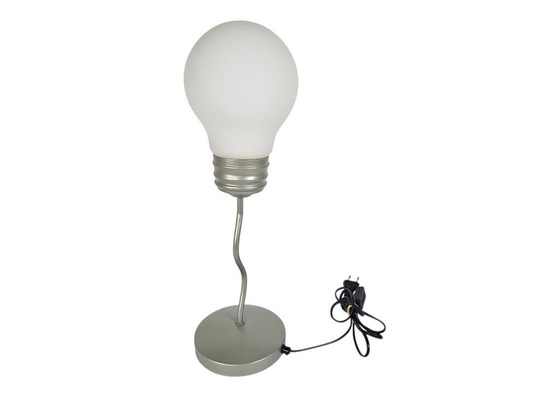 Deze opvallende tafellamp uit de jaren '90 is een prachtig voorbeeld van postmoderne en popart-invloeden. Met zijn unieke ontwerp trekt deze lamp onmiddellijk de aandacht en voegt een speelse en artistieke flair toe aan elke ruimte.