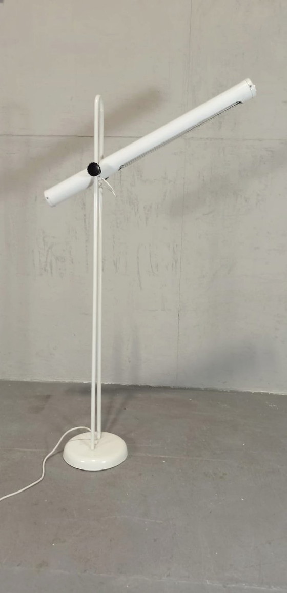 Vintage postmoderne witte buislamp. De buis kan in hoogte worden versteld. Wat krassen en verkleuring.