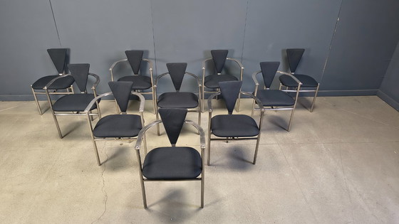 Postmoderne eetkamerstoelen van Belgo chrom, set van 10 - jaren 80