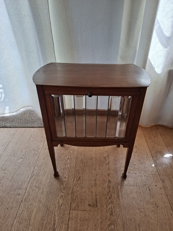 Dit prachtige, art deco theekastje is een unieke toevoeging aan elk interieur. Het kastje is voorzien van een afneembaar dienblad met ivoren handgreepjes, wat het zowel functioneel als stijlvol maakt. Gemaakt van hoogwaardig hout en facet geslepen glas in een koper profiel. Stevig kastje, opnieuw geschuurd en gelakt, glas schoongemaakt, klepkettingen vernieuwd. Naast wat ouderdomssporen, helemaal klaar voor een nieuwe eigenaar!