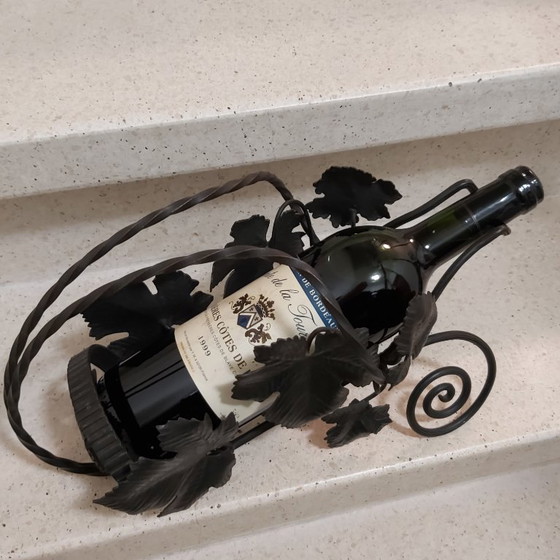 Prachtige flessenhouder in smeedijzer druivenblad uit Frankrijk