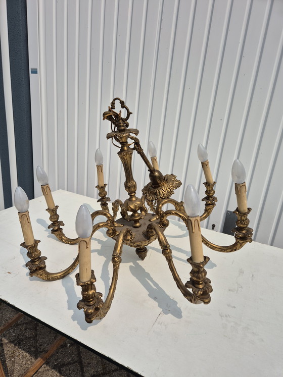 Prachtige gedecoreerde nederlandse massieve bronzen kroonluchter