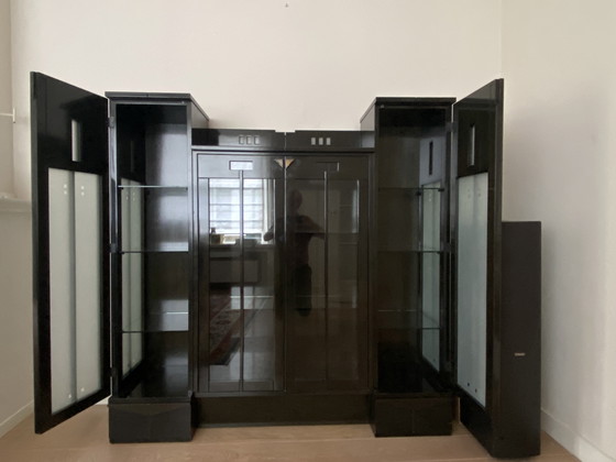 Betreed een wereld van elegantie met deze prachtige Giorgetti-kast, een meesterwerk uit 1988 dat de tijdloze allure van Art Deco-design belichaamt. Deze met precisie vervaardigde kast is een ideale aanvulling op elk huis met een klassiek interieur en biedt zowel functionaliteit als stijl. De kast is gemaakt van hoogwaardig beukenhout en afgewerkt met een transparante zwarte lak, wat de verfijnde uitstraling versterkt. Het ruime interieur is perfect om uw mooiste servies of glaswerk tentoon te stellen, waardoor het een praktische keuze is voor eetkamers of woonkamers. De strakke lijnen en elegante vorm getuigen van Giorgetti's befaamde vakmanschap en zorgen ervoor dat dit meubelstuk een blikvanger in uw huis blijft. Verrijk uw leefruimte met deze schitterende kast, een perfecte combinatie van schoonheid en functionaliteit. Informeer vandaag nog en maak hem van u.