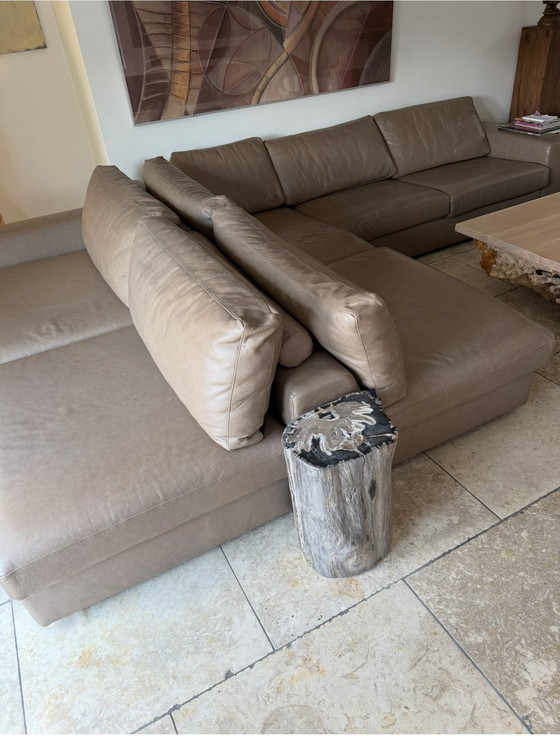 Ervaar het toppunt van luxe en comfort met deze prachtige grote leren loungebank in een verfijnde donkertaupe tint. Perfect ontworpen om elke leefruimte te verfraaien, combineert dit meubelstuk elegantie met functionaliteit en biedt het voldoende zitruimte voor zowel familie als gasten. De zachte kussens en strakke lijnen maken het een ideaal middelpunt voor zowel moderne als klassieke interieurs.