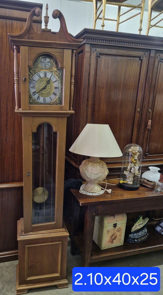 Deze klok is niet alleen een functioneel uurwerk, maar ook een decoratief stuk dat een gevoel van traditie en verfijning toevoegt aan uw woonruimte. Neem vandaag nog contact op voor meer informatie of om deze prachtige klok aan uw collectie toe te voegen.