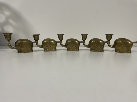 prachtige set 5 vintage messing olifantenkaarsenhouders, Duitsland door Haku in de jaren 60