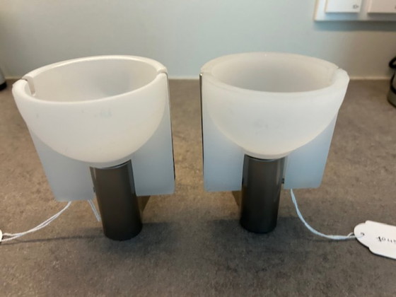 De Micron 11 is een ontwerp van Mario Mengotti voor het Italiaanse merk Prandina uit 1990. Deze kleine wandlamp is met name geschikt voor langs een spiegel in de (bad)kamer of als verlichting langs een bed. In een klein kommetje van gematteerd glas is een E14-fitting voor een bolvormige ledlamp van 1,9 of 3,5 watt. De houder die ook fungeert als wandbevestiging is gemaakt van geborsteld RVS. De lamp verkeert in uitstekende staat en is 13 cm hoog, 9 cm breed en 11 cm diep. Drie exemplaren beschikbaar. De stukprijs is vermeld.