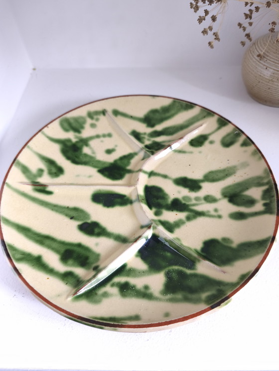 Dit Provençaalse aperitiefbord is perfect voor een gezellige avond. Het is gemaakt van keramiek en heeft een rustiek ontwerp met groene motieven op een crèmekleurige achtergrond. Het is verdeeld in vakken om je hapjes op een elegante manier te organiseren. Ideaal voor het serveren van chips, groenten of vleeswaren en brengt een vleugje Provençaalse charme op tafel.