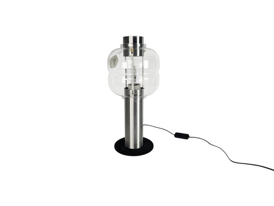 Ervaar de tijdloze elegantie van de Raak Amsterdam 'Bolbliksem' tafellamp, model 2150 uit de jaren '60. Deze lamp, met zijn iconische ontwerp, voegt een vleugje Mid Century Modern stijl toe aan elke ruimte. Het transparante glazen omhulsel en de zilverkleurige metalen basis creëren een verfijnde uitstraling die zowel functioneel als decoratief is.\n\n- Uitstekend voorbeeld van Mid Century Modern design\n- Hoogwaardige materialen: metaal en handgemaakt glas\n- Iconisch ontwerp van Raak Amsterdam\n\nDeze lamp is een perfecte aanvulling voor liefhebbers van vintage design. Neem contact met ons op voor meer informatie of om deze unieke lamp aan uw collectie toe te voegen.