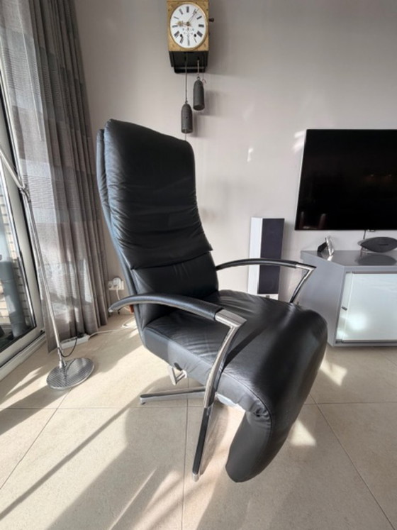 De stoel is in perfecte staat en is uitgevoerd met hoogwaardig lederen kwaliteit in het zwart. Hij staat op een 5 teens stervoet en is handmatig verstelbaar.