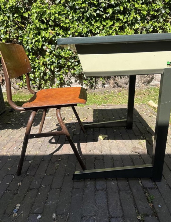 Breng een vleugje nostalgie in uw huis met dit charmante retro schoolbankje en bijpassend stoeltje. Deze set, met zijn klassieke groene tint en stevige metalen frame, roept herinneringen op aan vervlogen schooldagen. Het houten blad en de duurzame materialen maken het zowel functioneel als stijlvol. Perfect voor kinderkamers of als een uniek decoratief element in uw interieur. Neem vandaag nog contact op voor meer informatie of om een bezichtiging te plannen.