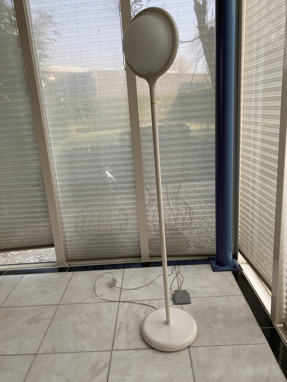 Retrolamp van de Italiaanse fabrikant Lucente. De 2 halve bollen zijn van wit melkglas. Het betreft hier een nieuwe lamp uit de showroom. Er zitten 2 hele kleine beschadigingen op de voet. De normale prijs voor deze lamp is €498.