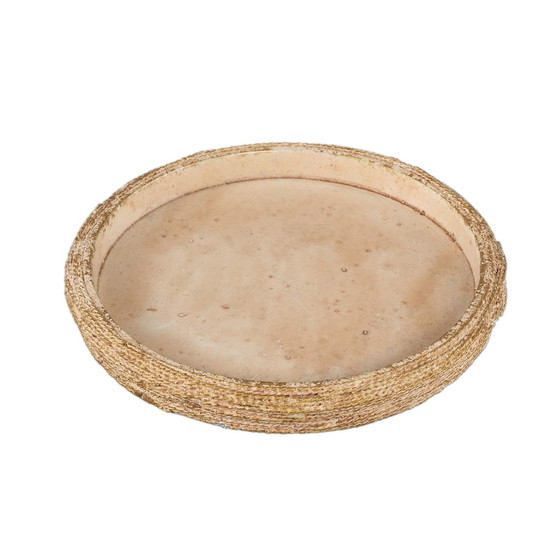 Decoratieve schaal van cement in natuurlijke bruine tint. De Ricci S van PTMD heeft een ronde vorm en subtiele structuur. Ideaal als decoratief item op tafel of dressoir. Afmeting ca. 35 cm doorsnede.