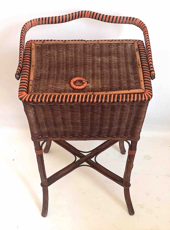 ConditieUitstekendKleurenBruin, OranjeMateriaalRotan, RietenAantal stuks1Hoogte73 cmBreedte43 cmDiepte39 cm