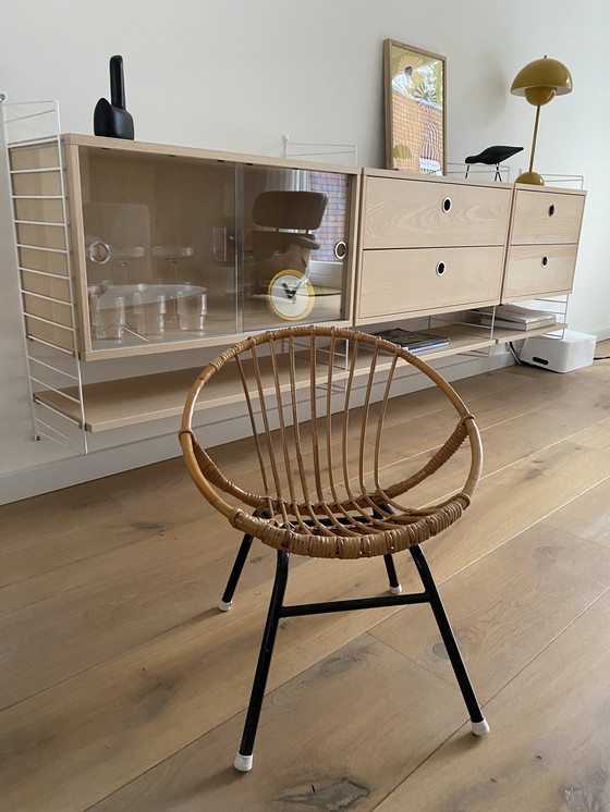 De Rohé Noordwolde Sliedregt kinderstoel ca.1956 is een vroege hoepelstoel van Dirk van Sliedregt en behoort tot de meest charmante rotan kindermeubelen uit Nederland. De combinatie van rotan en een slank metalen frame creëert een luchtig silhouet waarin functionaliteit en esthetiek overtuigend samenkomen. Daardoor past dit kuipstoeltje uitstekend in moderne en vintage interieurs.