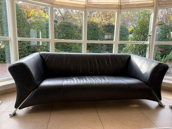 Goed onderhouden Rolf Benz bank 3-zits. Kleur: zwart Materiaal: leer Diepte: 91 cm Breedte: 210cm Hoogte rugleuning: 71cm