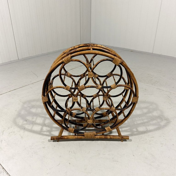 Image 1 of Rond rotan wijnrek flessenrek 1970's