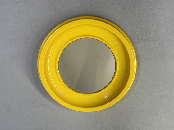 Breng direct een vleugje retro-glamour in je interieur met deze opvallende ronde spiegel in zonnig geel! 🌞 Het ontwerp ademt de speelse en iconische stijl van de jaren 70, sterk geïnspireerd door het Italiaanse designmerk Kartell.