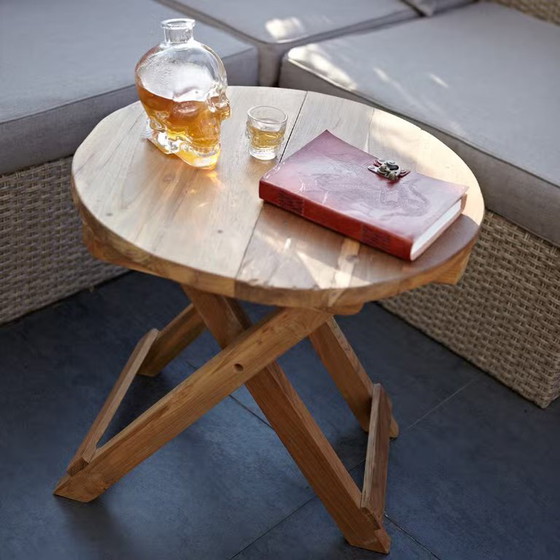 Deze ronde tafel is perfect als kleine salontafel of als bijzettafel voor een boek of kop koffie. De tafel is inklapbaar, waardoor hij ideaal is voor een picknick, kampeertrip of dagje strand!