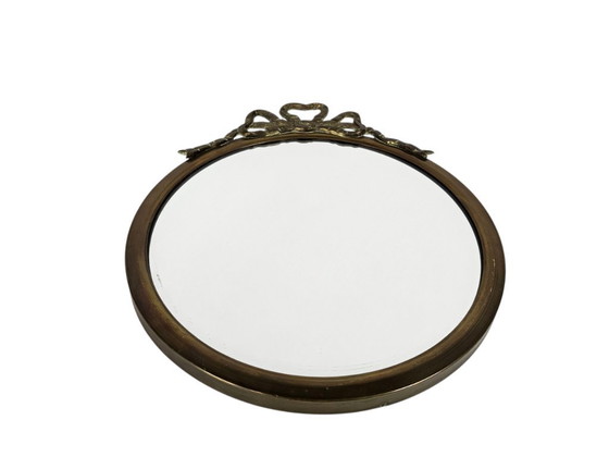 Ronde spiegel met strik - koper - glas - Hollywood Regency - 3e helft 20e eeuw