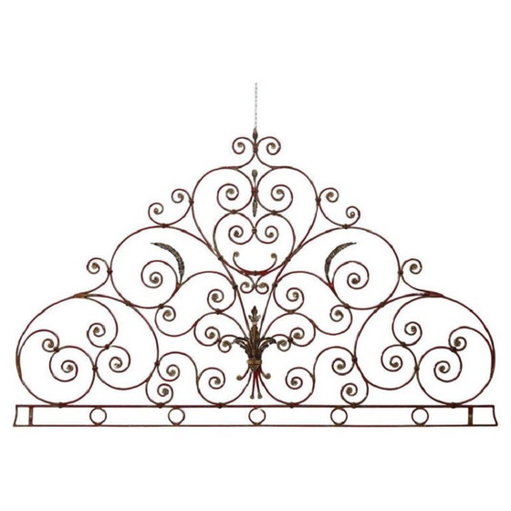 Dit prachtige Italiaanse hoofdbord is een verbluffende belichaming van elegantie en verfijning, begin 20e eeuw gemaakt van ijzer. Het is geïnspireerd op barokontwerp en heeft ingewikkelde krullen en krullen die een opvallende visuele impact creëren en tegelijkertijd een luchtige uitstraling hebben.