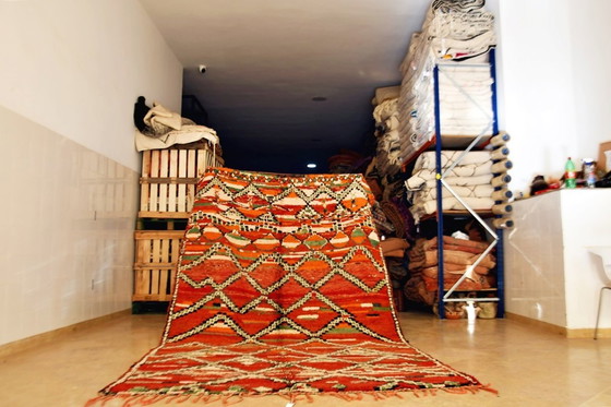 Dit opvallende Boujaad tapijt is perfect om warmte en culturele diepte toe te voegen aan je woonkamer, slaapkamer of kantoor. Het geeft een tijdloos en levendig statement aan je ruimte.