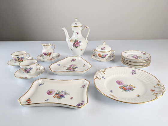 Royal Copenhagen koffie/thee servies met handgeschilderde Saksische bloemen 1930S