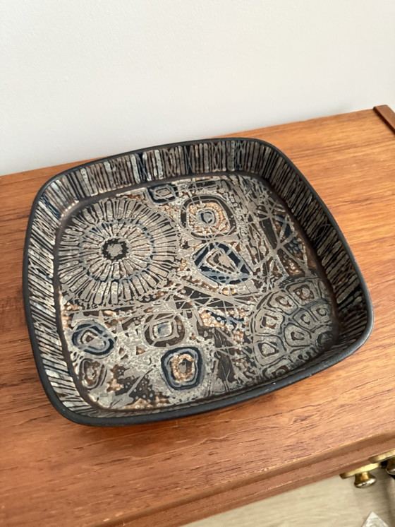Prachtige Deense design schaal, onderdeel van de Baca serie, Royal Copenhagen. De schaal heeft een mooie opstaande rand. Design van Nils Thorsson. Ontworpen in de jaren 60. Mid Century. Genummerd 870/ 2884. Abstracte voorstelling. De conditie is goed, onbeschadigd, zie details. De afmetingen zijn 22 cm breed en 4 cm hoog. De schaal verkeert in uitstekende conditie zonder chips of barsten.