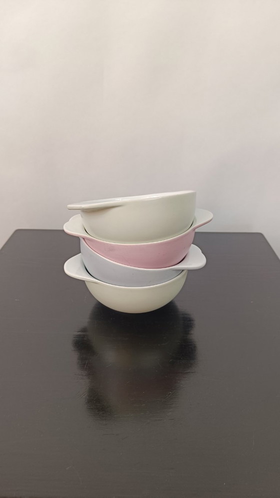 Set van 4 Royal Goedewaagen schaaltjes uit Gouda in 4 kleuren pasteltinten. Afmetingen: b15,5 x d12 x h5,5cm.