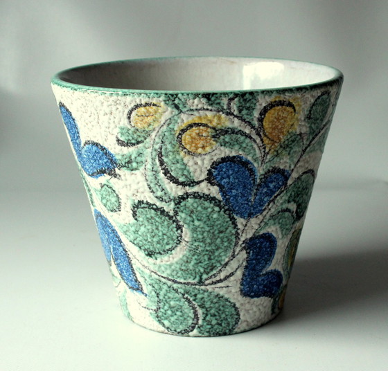 Mid Century bloempot - cachepot - keramiek van Ruscha - met handgeschilderde bloemdecoratie - Grote vintage bloempot van keramiek uit de jaren 1960 - Prachtig expressief motief - In zeer goede vintage staat onbeschadigd, met minimale gebruikssporen - zie foto's. Met de hand beschilderd. Gemerkt.
