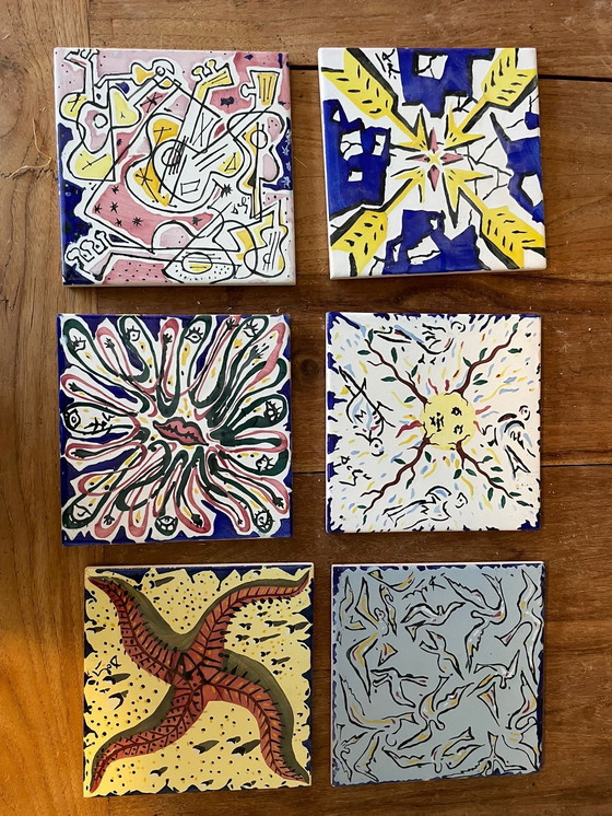 Salvador Dalí ontwierp in 1954 zes keramische tegels "La Suite Catalane" en liet ze in Spanje produceren door de manufactuur El Siglo. Dit is een van de laatste keramische tegels van Dalí in de originele verpakking. De houten dozen zijn sinds 1954 niet meer geopend. Ik zal de doos openen en het keramiek opnieuw verpakken voor verzending. U biedt op 1 set van 6 keramieken. De foto's zijn voorbeelden, ik open een 70 jaar oude doos voor je, elke tegel is uniek en kan iets afwijken van de foto's!