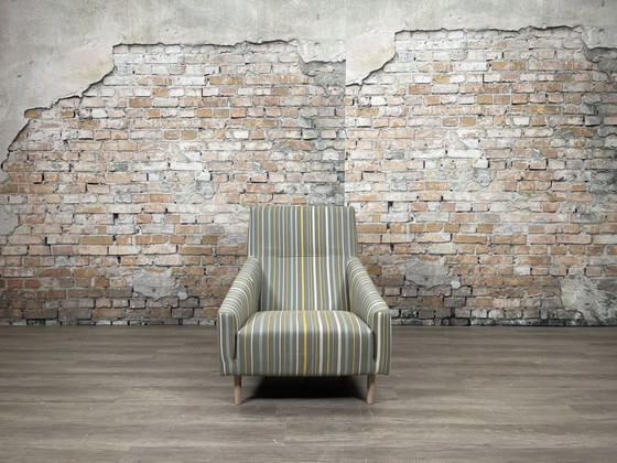 Merk & type: Sancal Soul Informatie (ontwerper): De Soul is een ontwerp van Rafa García voor het merk Sancal. Een elegante gestoffeerde fauteuil die discreet, comfortabel en compact is. Het is geschikt voor de decoratie van moderne woonkamers en wachtruimtes. Door de kenmerkende brede rugleuning, lange armen en een lage comfortabele zitting kun je niets anders doen dan heerlijke achterover leunen! Afmetingen: Breedte: 66 cm Diepte : 80 cm Hoogte: 88 cm Zithoogte: 36 cm Zitdiepte: 50 cm Kleur: Meerkleurig Gestreept Materiaal: Stof, Hout
