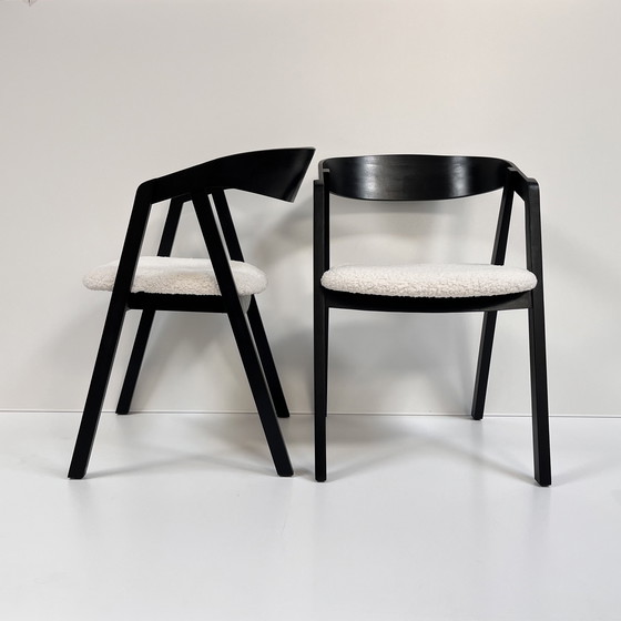 Verhoog je eetervaring met deze prachtige eetkamerstoelen met Scandinavisch design. Hun strakke zwarte houten frame contrasteert prachtig met de zachte witte stoffen zitting, waardoor een moderne maar tijdloze look ontstaat die naadloos in elk interieur past.