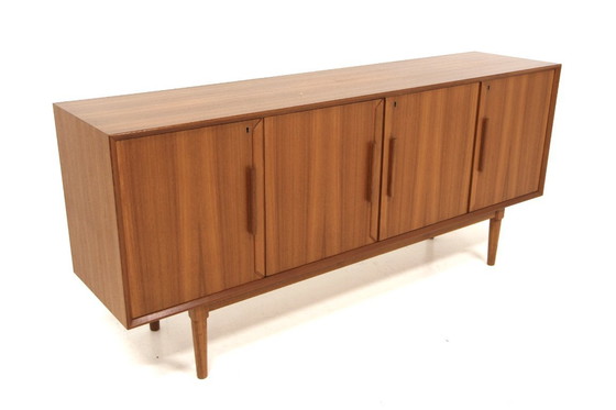 Teakhouten ladekast, ontworpen in Zweden in de jaren 60. In uitstekende staat met minimale gebruikssporen. Beukenhouten poten. In originele vintage staat. 27445