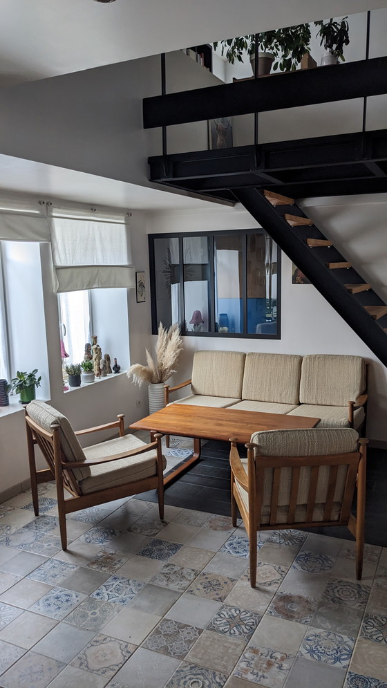 Scandinavische woonkamerset uit de jaren 60, als volgt samengesteld: