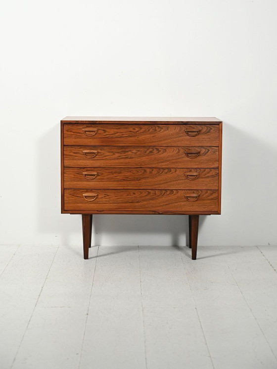 Ladekast uit de jaren 60 van palissanderhout met vier laden en sculpturale handgrepen, ontworpen door Kai Kristiansen.
