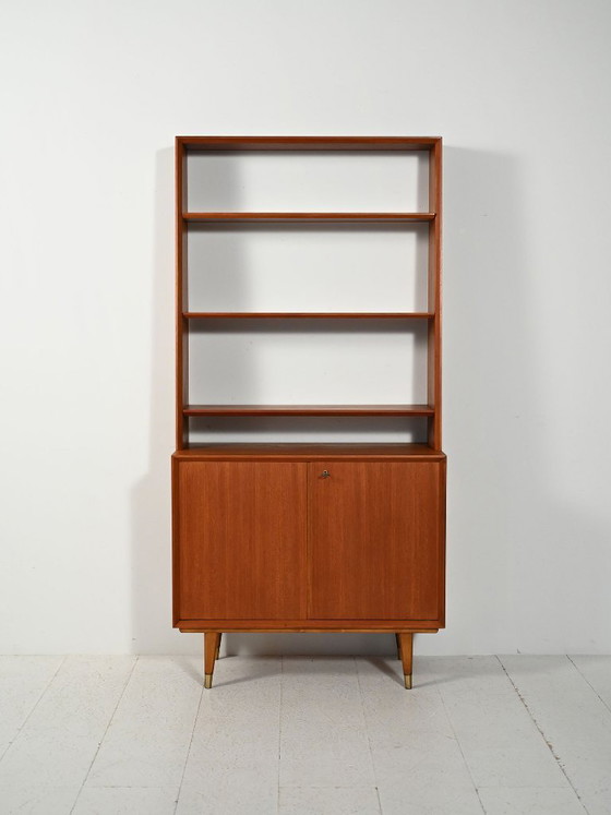 Scandinavische teakhouten boekenkast met kastje, jaren 1950-1960