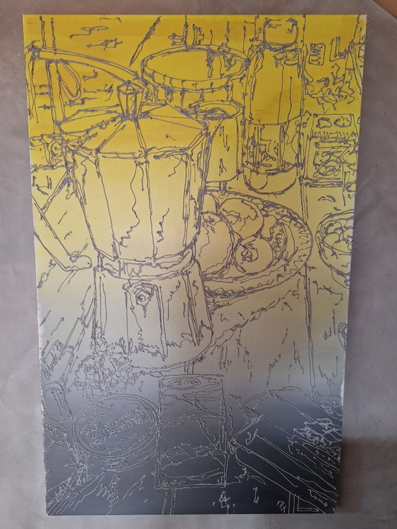 Schilderij is gemaakt met kit. Formaat BxH 100 cm x 160 cm.