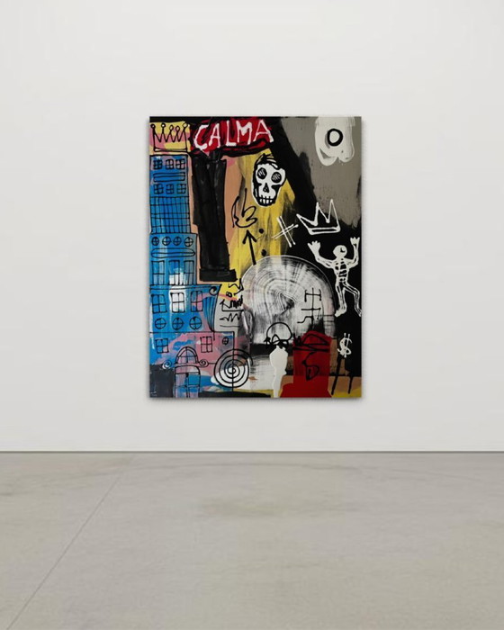 Dit opvallende abstracte schilderij brengt een gedurfde kleur- en creativiteitspektakel in elke ruimte. Met zijn levendige mix van zwart, blauw, rood, geel en wit trekt het de aandacht en prikkelt het de verbeelding. Perfect voor moderne interieurs, voegt dit kunstwerk een dynamische en artistieke touch toe aan uw interieur.