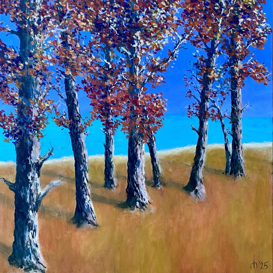 Met mijn fascinatie voor bomen ben ik langzamerhand bekend geraakt, portretten van bomen noem ik ze. Zichtbaar in de vorm is wat er is gebeurd in het leven van de boom. Vrolijk vrijuit gegroeid, reikend naar de lucht, maar ook geteisterd, gebogen door de wind, afgescheurd, gezaagd en gehakt, met groeizame seizoenen en altijd een huis voor vogels en insecten.
