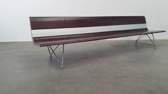 5 Zits Aluminium Bank (311 cm) met Wenge Gekleurde Houten Zittingen.