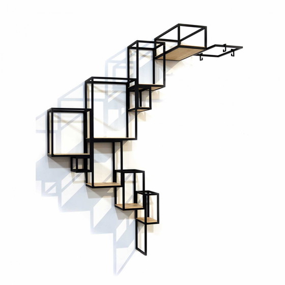 Serax Jointed wandrek Jointed is een multifunctioneel wandrek, opgebouwd uit verschillende modules in zwart staal gecombineerd met eiken legplanken. Een échte blikvanger in huis en ideaal als boekenplank, om objecten op te plaatsen, enz...
